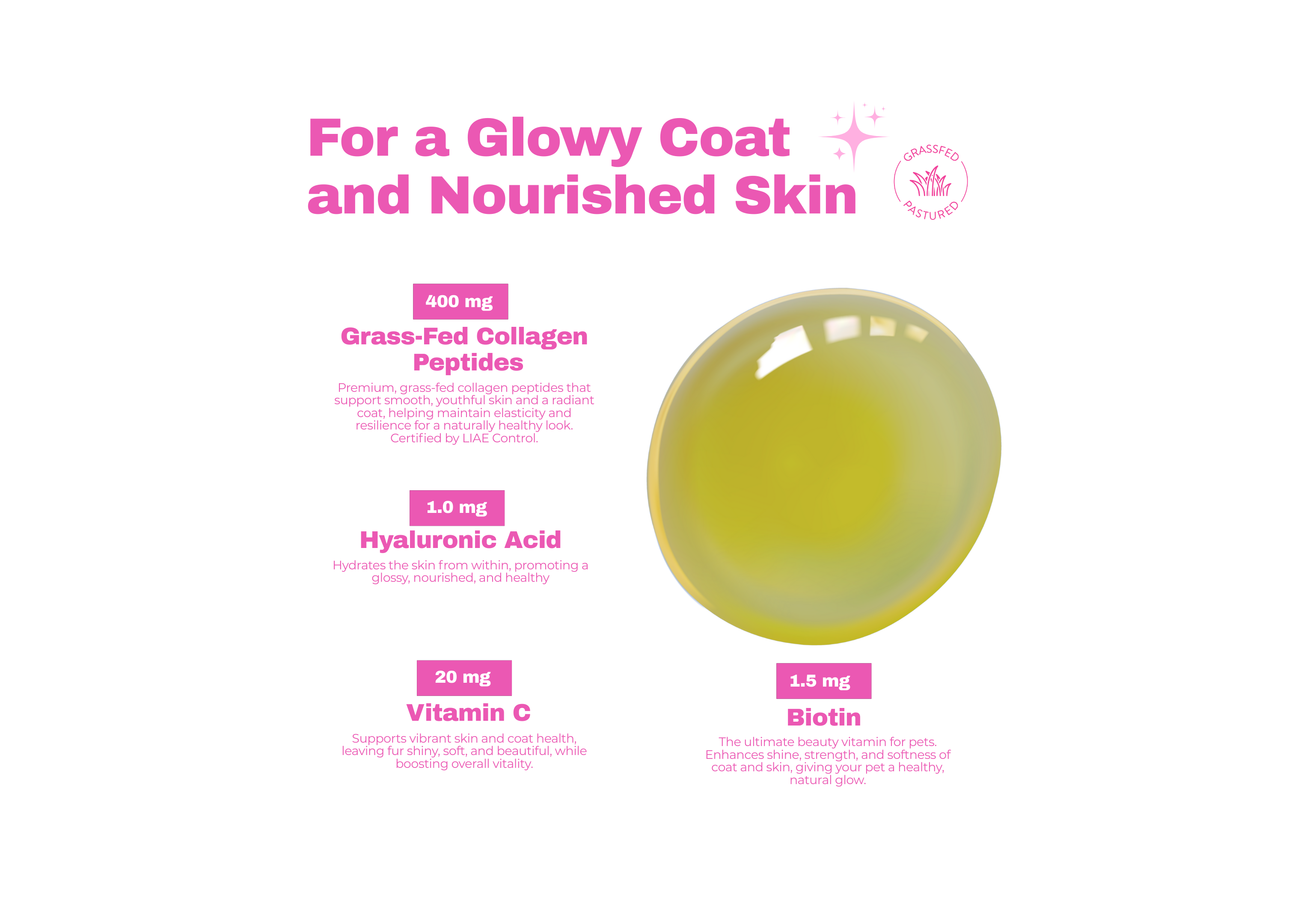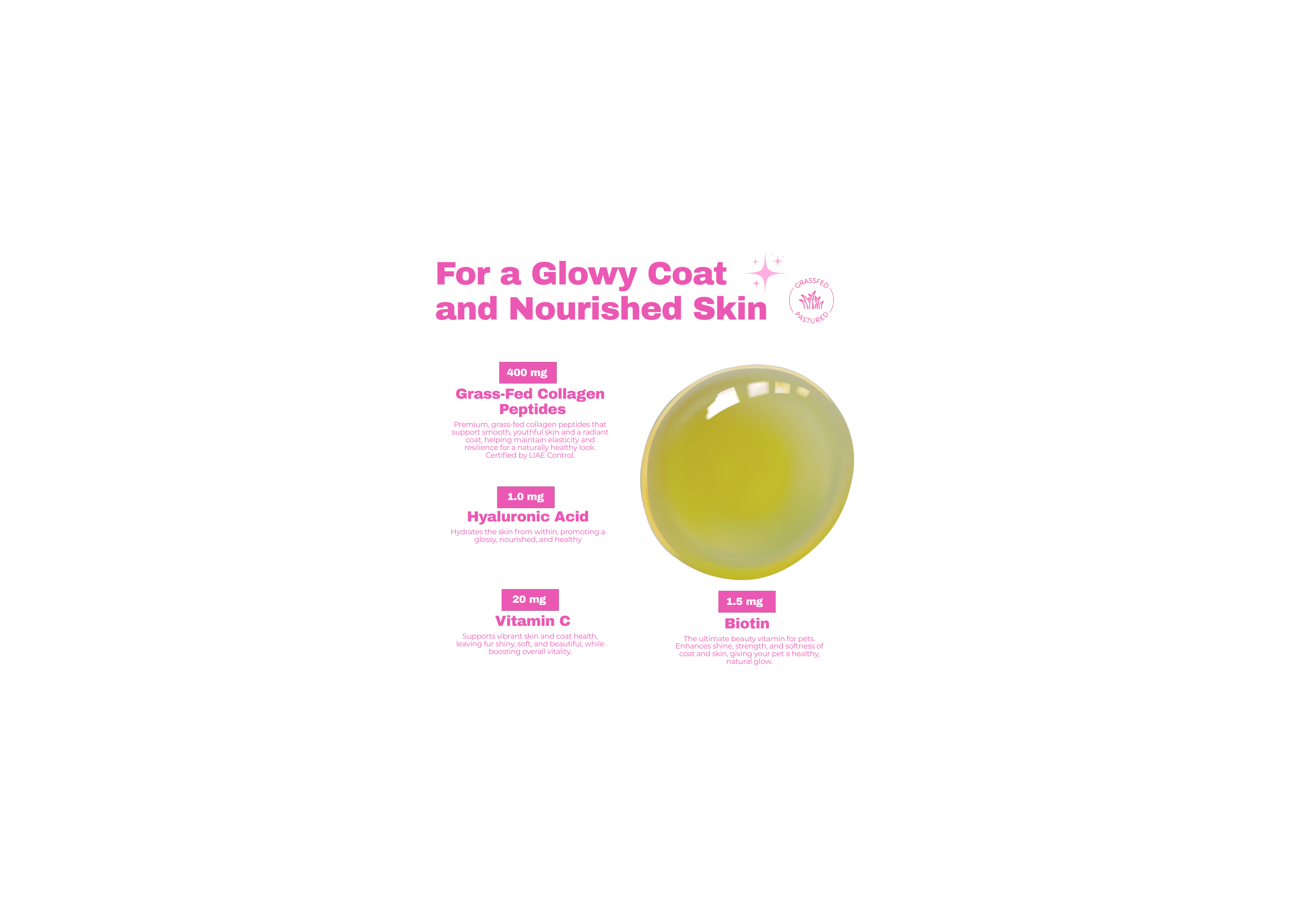 Why pets love it: A savory bacon flavor combined with rich, grass-fed beef collagen—a delicious combo pets simply can’t resist.