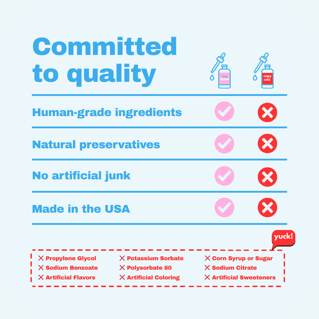 Kitty Glow Collagen is a premium hydrolyzed collagen blend that delivers all essential and non-essential amino acids your pet needs. Fortified with Vitamins B and C, it supports healthy hips and joints, promotes a shiny coat and healthy skin, and boosts overall wellness from the inside out.
